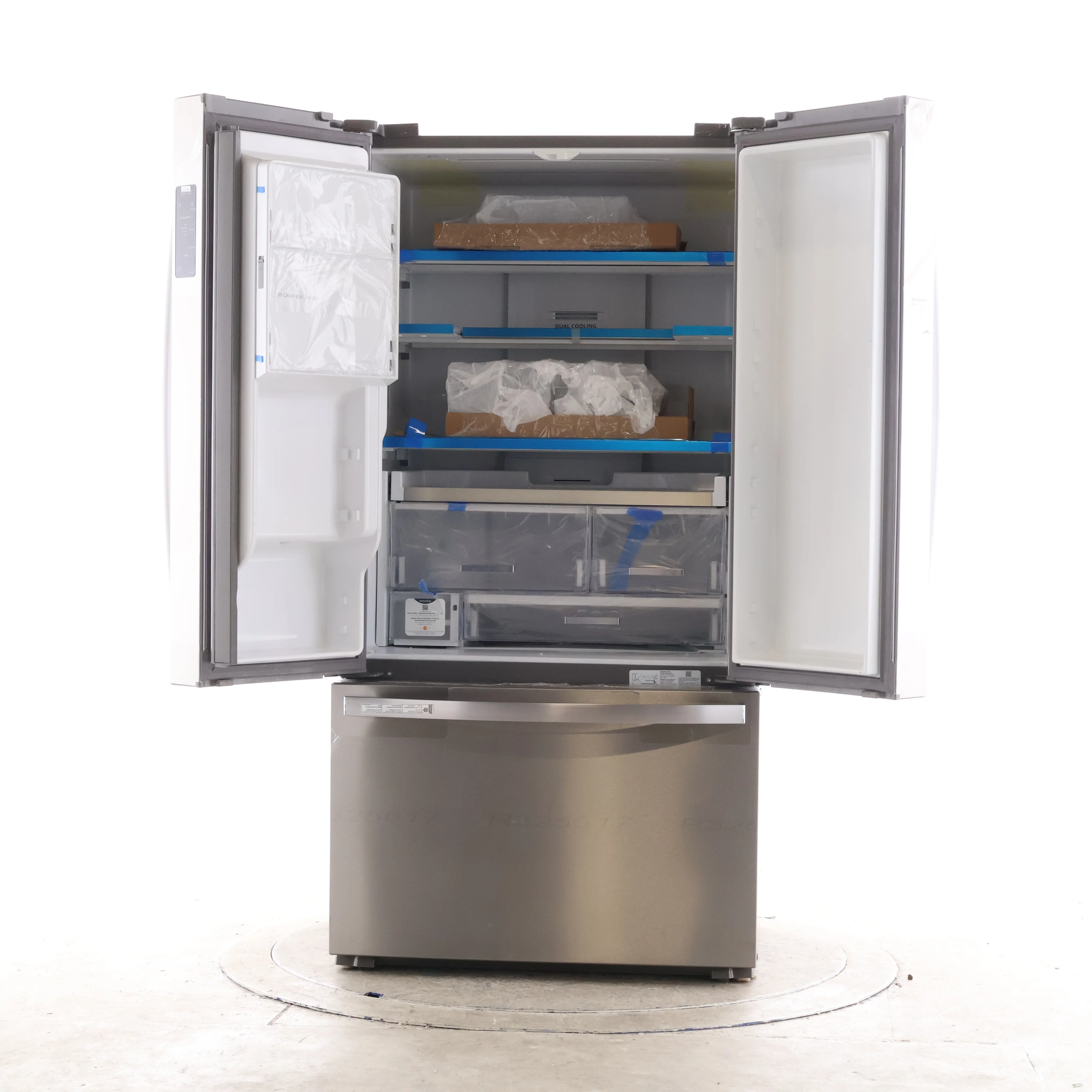 - French door configuration provides easy, wide-access viewing of fresh food sections