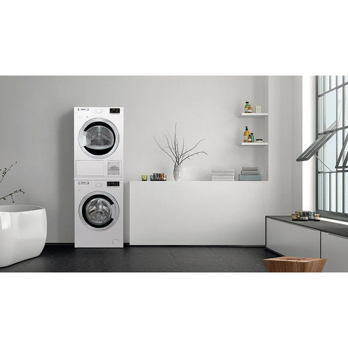 The Blomberg DHP24400W is a compact 24 inch ventless heat pump dryer designed for apartments, condos, and laundry rooms where exterior ducting is not an option. With a stainless steel drum and digital display controls, it delivers fabric-friendly drying in a space-saving footprint.