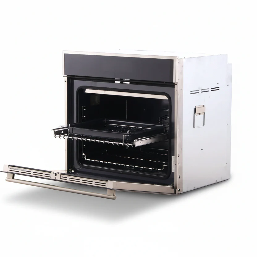 The Porter & Charles SOPS76PS is a 30-inch built-in multi-function electric wall oven built for serious home cooks who demand versatility and precision. Its generous 120L (4.3 cu. ft.) capacity paired with 13 cooking functions, including True Fan convection and SteamAssist, ensures consistent, restaurant-quality results at home.